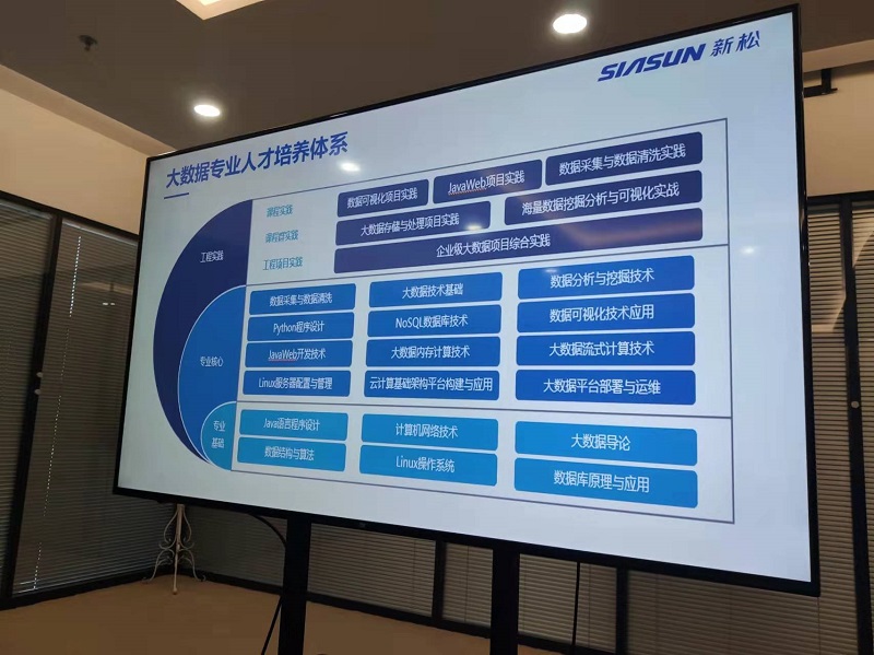 首先,李院长及工作人员对各位老师表示热烈的欢迎,并介绍:集团主要以高端应用型智能制造人才培养为主,涉及技术研发、教育产业投资、教育咨询等四个板块的服务。新松教育拥有国际、国内多项教育培训认证资质及教育、科研、产业领域的高端团队。李院长还说,大数据专业发展前景光明,它在工业、医疗、交通、航空、金融等领域都有应用,预计在2025年,大数据专业人才缺口将达到230万人。