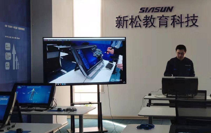 然后,各位老师参观了展览区的机器人自动化设备、机电设备等,这些设备一般应用于高危工作环境中;着重展示了虚拟现实技术和焊接技术,戴上VR眼镜后可虚拟拆卸、组装设备,还可以将零件虚拟取出,将零件进行放大、缩小、360度旋转等操作,这项技术能大大降低引进真实设备的成本,减小占用空间;又展示了人工智能实验平台和新松大数据实训平台。参观该家企业的科技成果的同时,也了解了研究这些科技成果的相关技术。