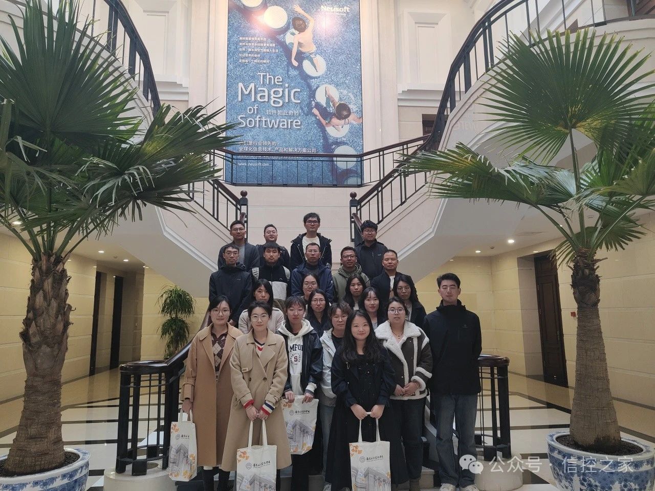 首先,由东软集团负责人力资源部的段落老师和周薇老师带领同学们参观园区和办公场地。同学们了解了东软集团的发展历程、业务布局以及核心技术成果,通过参观,使同学们身临其境地感受到了浓厚的工作氛围和东软集团在多个领域的辉煌成就,激发了同学们对未来学习生活的热情与信心。
