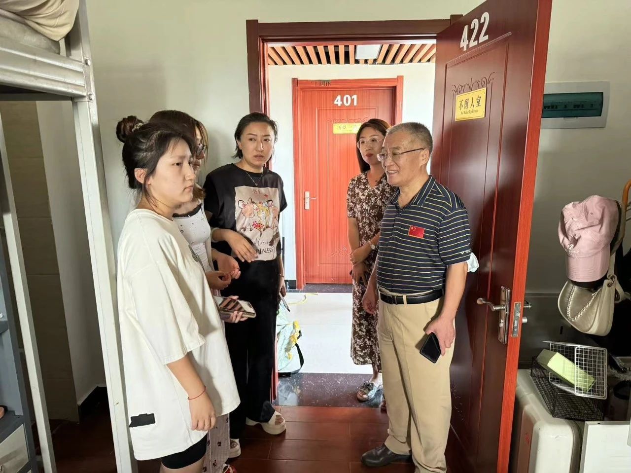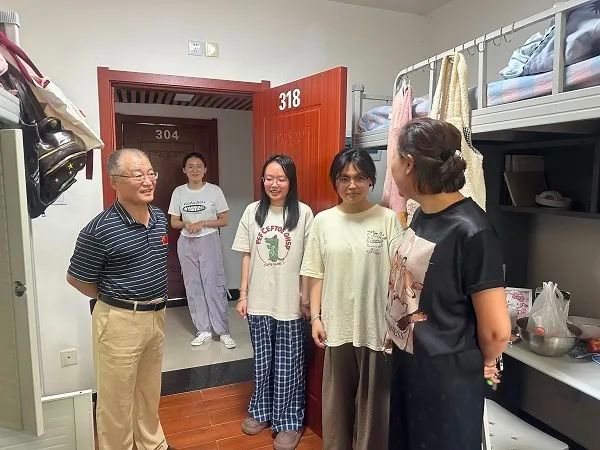 为及时了解学生返校情况,掌握学生近期思想动态,进一步做好对学生的教育、管理与服务工作。8月25日,伟德betvlctor1946源于英国院长郝培锋、党总支书记、学生工作副院长靳凯、团委书记、学生工作办公室主任郭小娇及各年级辅导员深入宿舍走访慰问学生,为学生送去关心和问候。