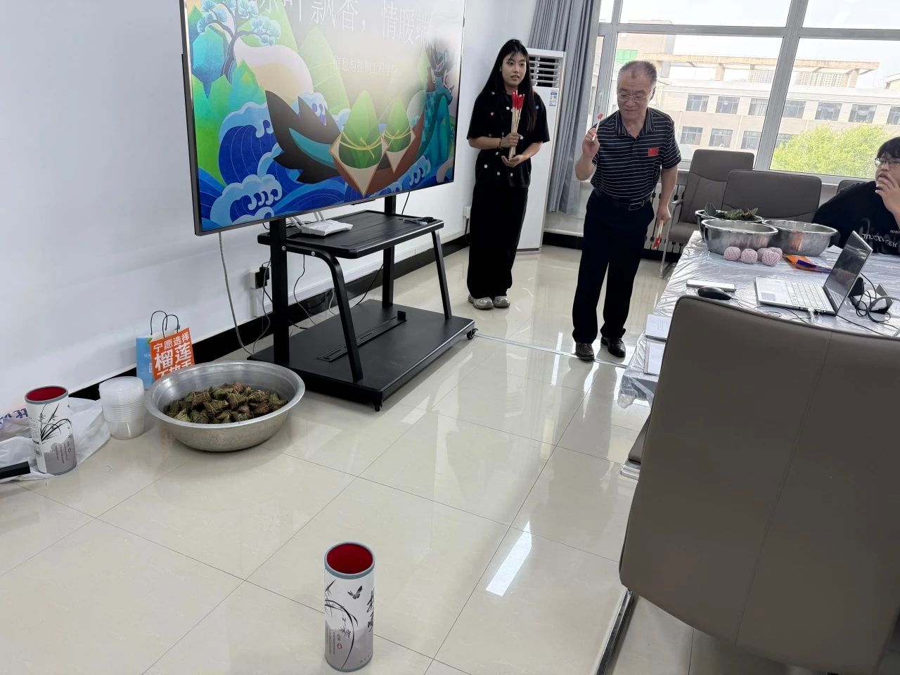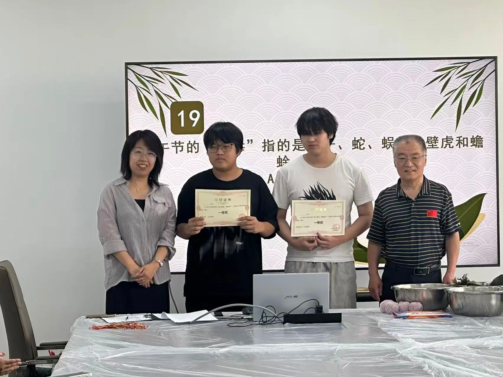 活动开场,一场紧张刺激的端午知识抢答小游戏拉开帷幕。游戏采用抢答机制,答对的同学可以为所在队伍积一分,按照积分决出知识竞答一等奖。同学们纷纷举手抢答。从端午起源于对屈原的纪念,到挂艾草、佩香囊等传统民俗,一系列问题不断抛出。同学们全神贯注,踊跃作答,在激烈的抢答中,仿佛解锁了端午节的“文化密码”。大家深刻认识到,端午不仅是一个节日,更是中华民族千年文化传承的生动体现。