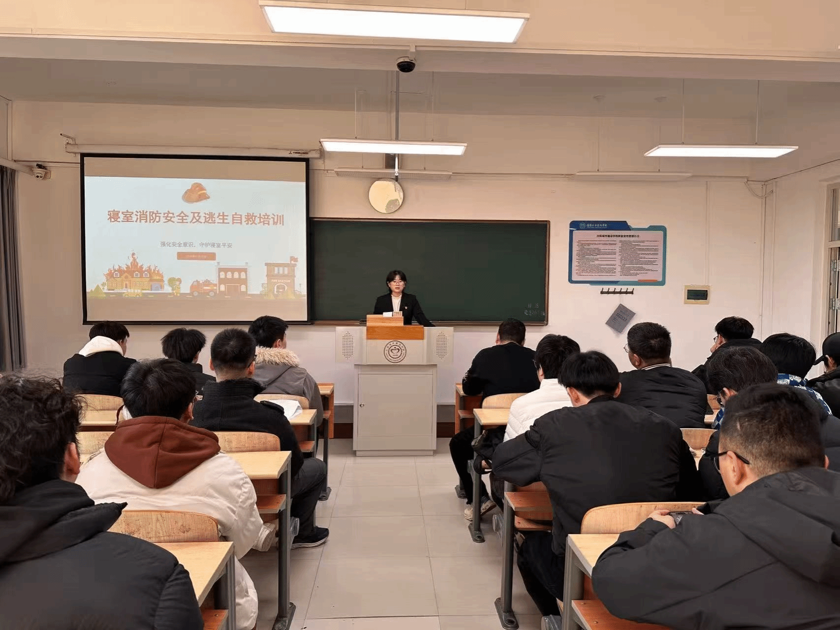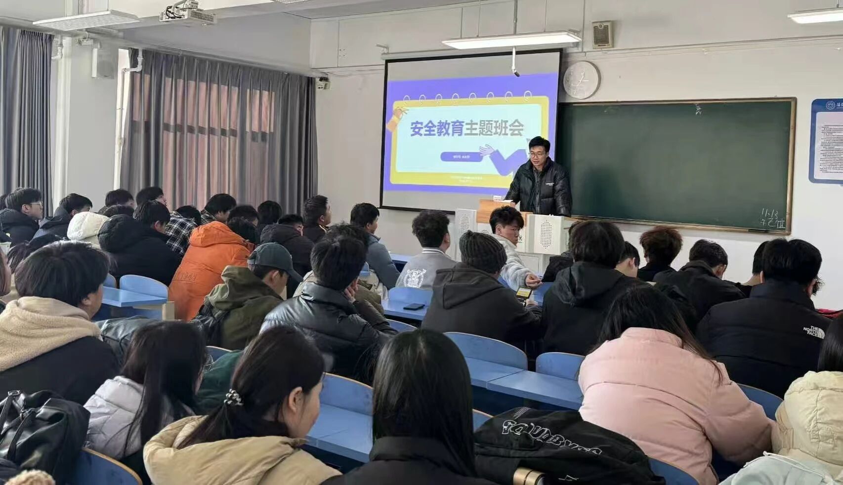 全体辅导员组织本院全体学生召开寝室消防安全及逃生自救主题班会。通过本次主题班会,向全院学生系统宣讲寝室消防安全规章制度,深刻剖析违规用电等危险行为的危害性,普及火灾预防知识与科学的逃生、自救、互救技能,强化学生的消防安全意识和应急处置能力,从源头上降低寝室火灾事故发生概率,保障学生生命财产安全。