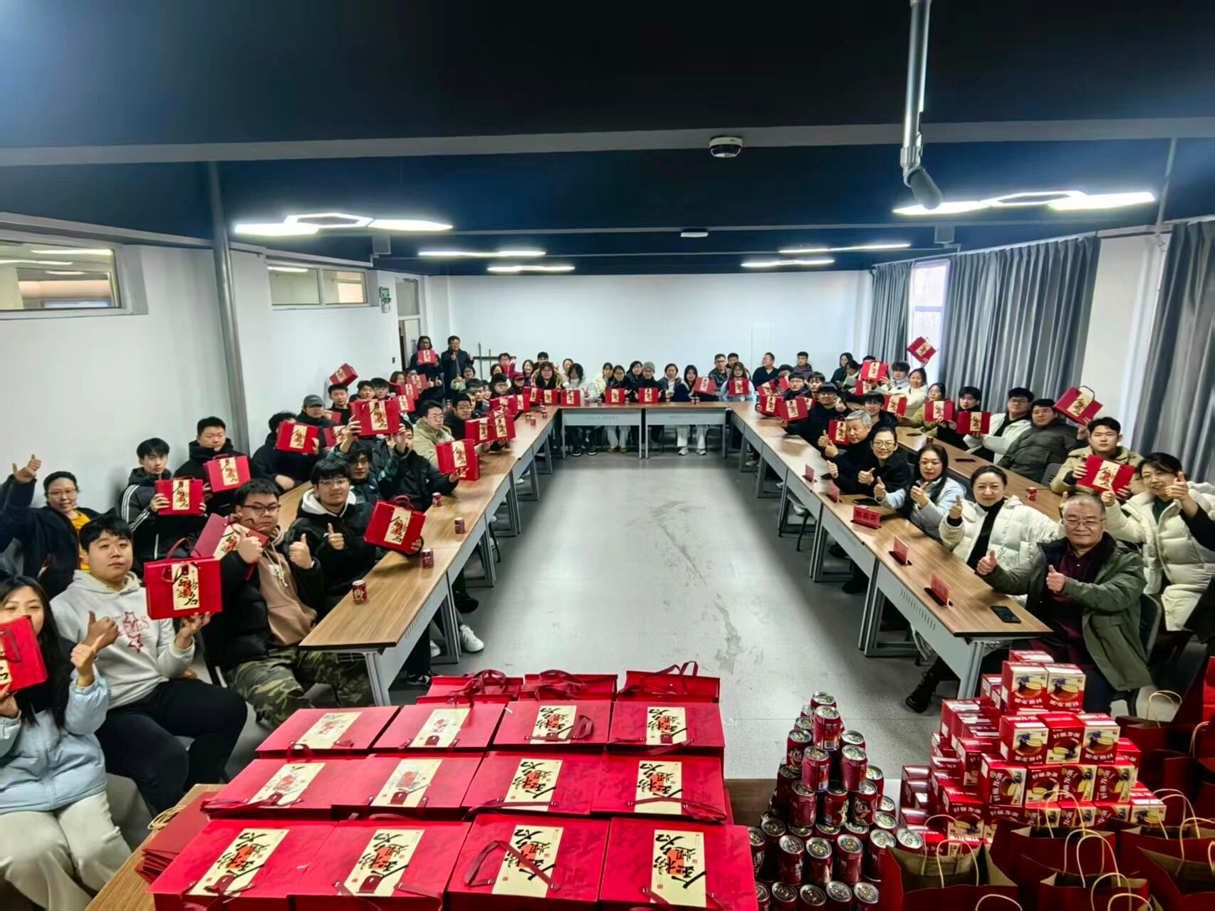 随后,学院领导与辅导员老师们为每位学子送上“考研冲刺助力礼包”,内含备考文具、能量零食、定制姓名旺仔牛奶等物资,传递学院的贴心关怀与美好祝愿。学子们精神饱满、斗志昂扬,纷纷表示将牢记嘱托,不负期望、全力以赴。