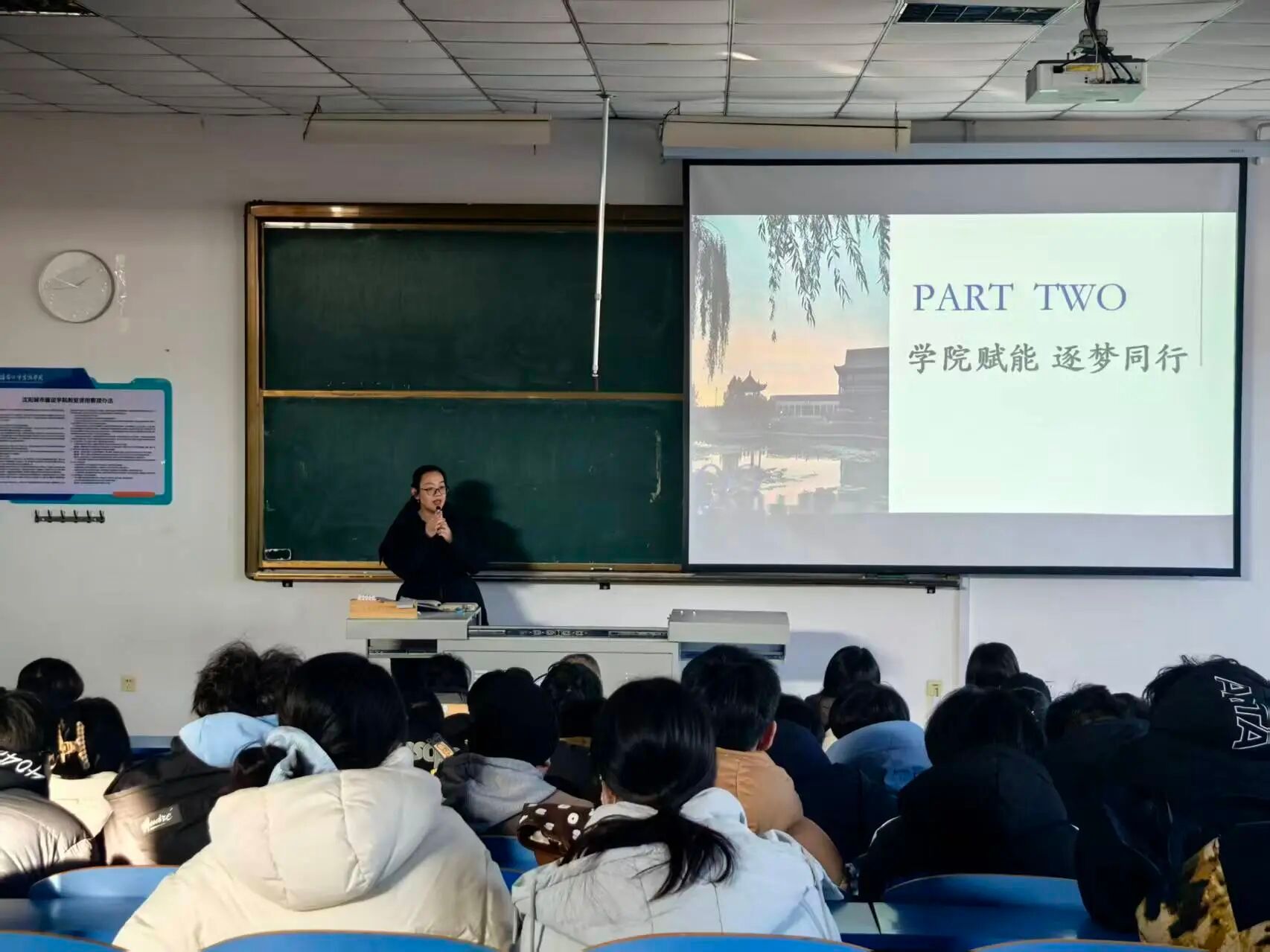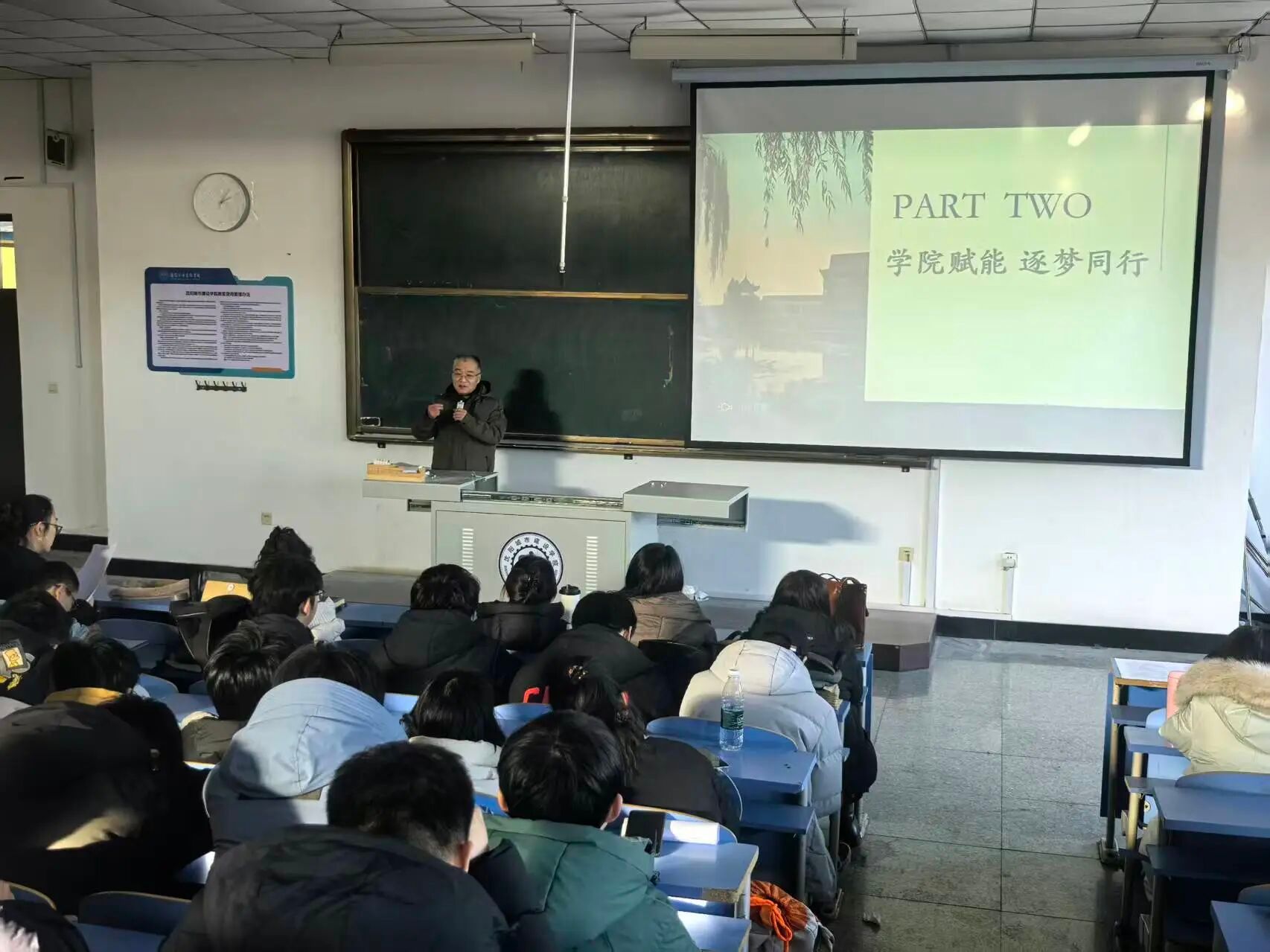 随后进入“学院赋能・逐梦同行”环节,杨明代表学院讲话。她重点介绍了学院为支持学生考研推出的一系列制度政策保障措施,包括专属备考场地供给、考研资料共享平台搭建、专业教师答疑辅导机制、心理健康疏导服务等,明确表示学院将全方位为考研学子保驾护航,为大家的考研之路扫清障碍、提供坚实支撑,让学生们能够心无旁骛地投入备考。