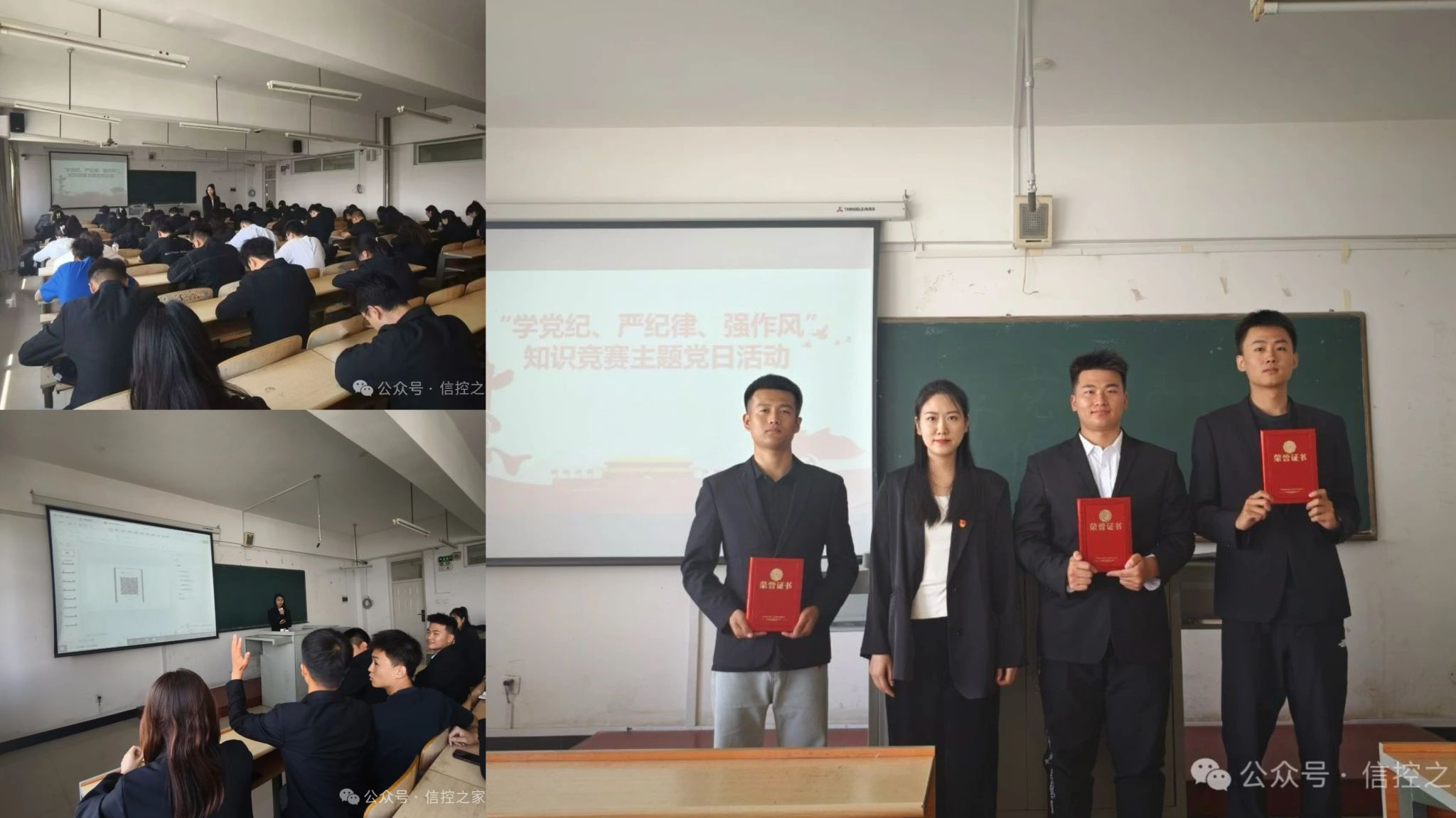 本次知识竞赛共有初赛和决赛两个环节,初赛采用线上学习通答题形式,决赛为现场抢答环节。竞赛题目涵盖《中国共产党章程》《中国共产党纪律处分条例》《中国共产党廉洁自律准则》等党纪党规、法律规范,涉及范围广泛、内容充实。竞赛中,参赛选手缜密思考、竞相作答,气氛热烈,展现出学院学生党员良好的政治素质和精神风貌。经过激烈比拼,吕明洋获得一等奖、王家旋获得二等奖、杜子彬获得三等奖。
