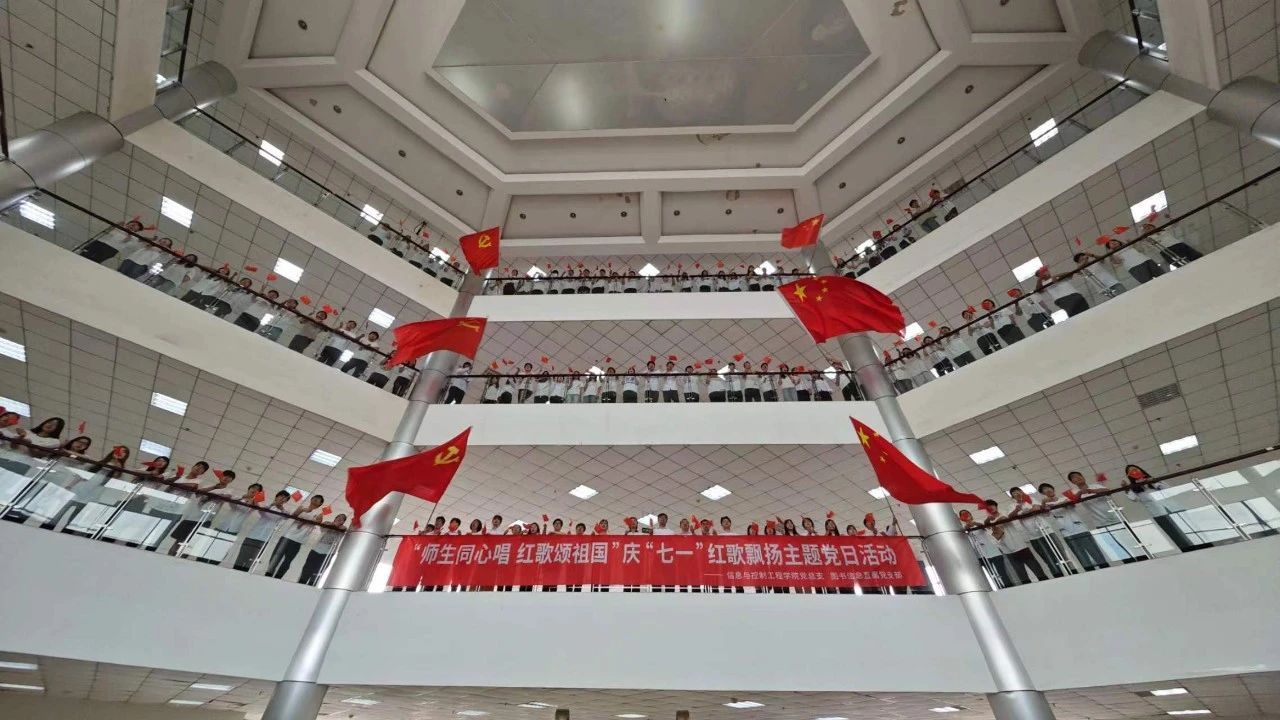 活动现场,师生党员、入党积极分子齐唱红歌,为党的生日献上自己的祝福。当《没有共产党就没有新中国》激昂磅礴的旋律一响起,在场的师生们马上以最饱满的精神状态投入合唱,挥动着手中的党旗、国旗。歌声回荡,大家的脑海中浮现出革命时代的各种画面,“他坚持了抗战八年多”的歌词,使人深切感受到抗战的艰辛,更觉今日幸福生活来之不易。《我和我的祖国》,旋律时而激昂,时而深情,激起师生心中爱国的涟漪,娓娓道来的红曲绕上心头。