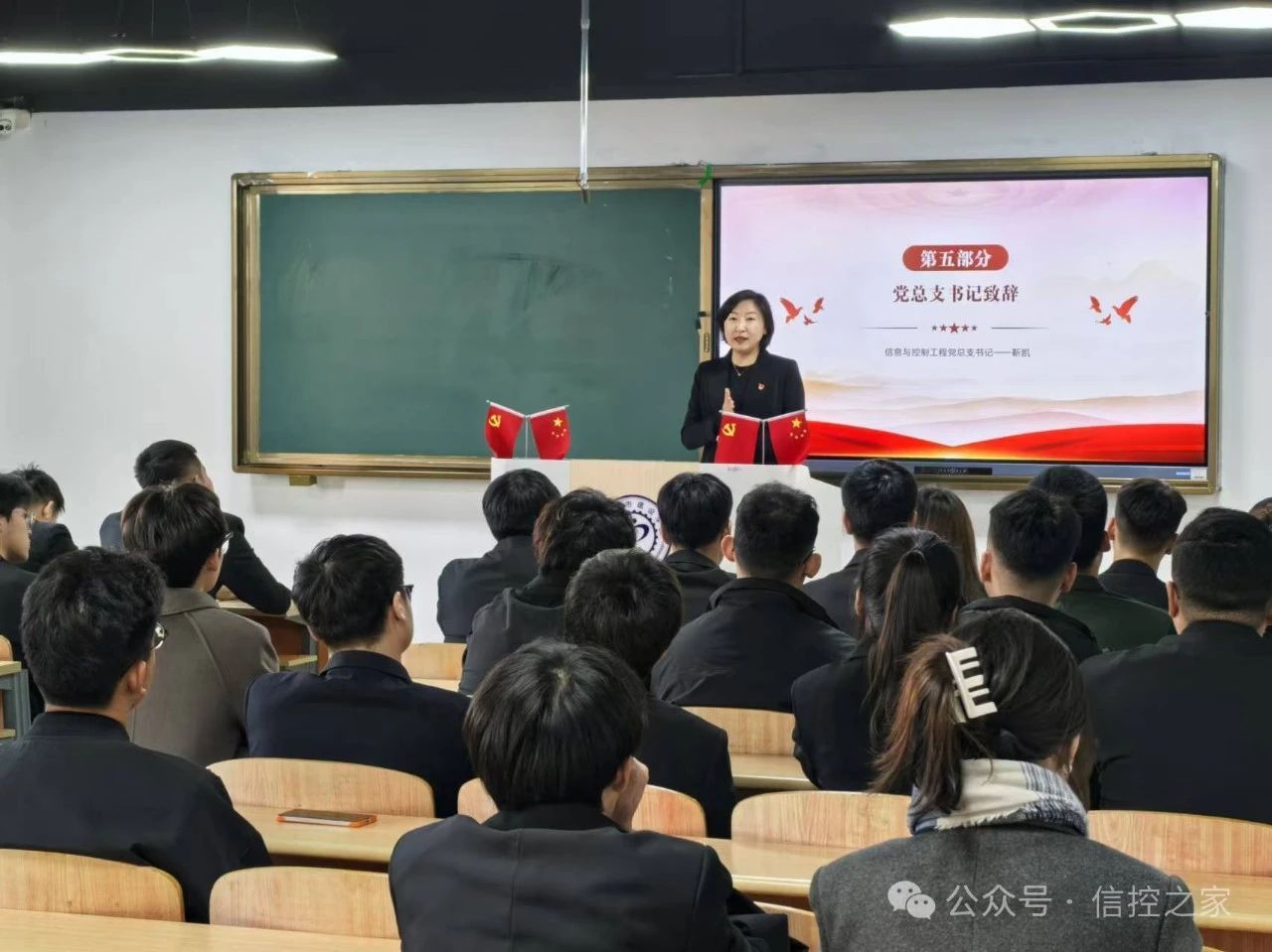 随后,学生党员代表孙浩然发言。他表示入党积极分子要始终保持蓬勃向上、意气风发的精神,积极向党组织靠拢,要以先进模范为榜样,珍惜学习机会,加强思想淬炼,不断强化责任担当,争做一名合格的学生党员。