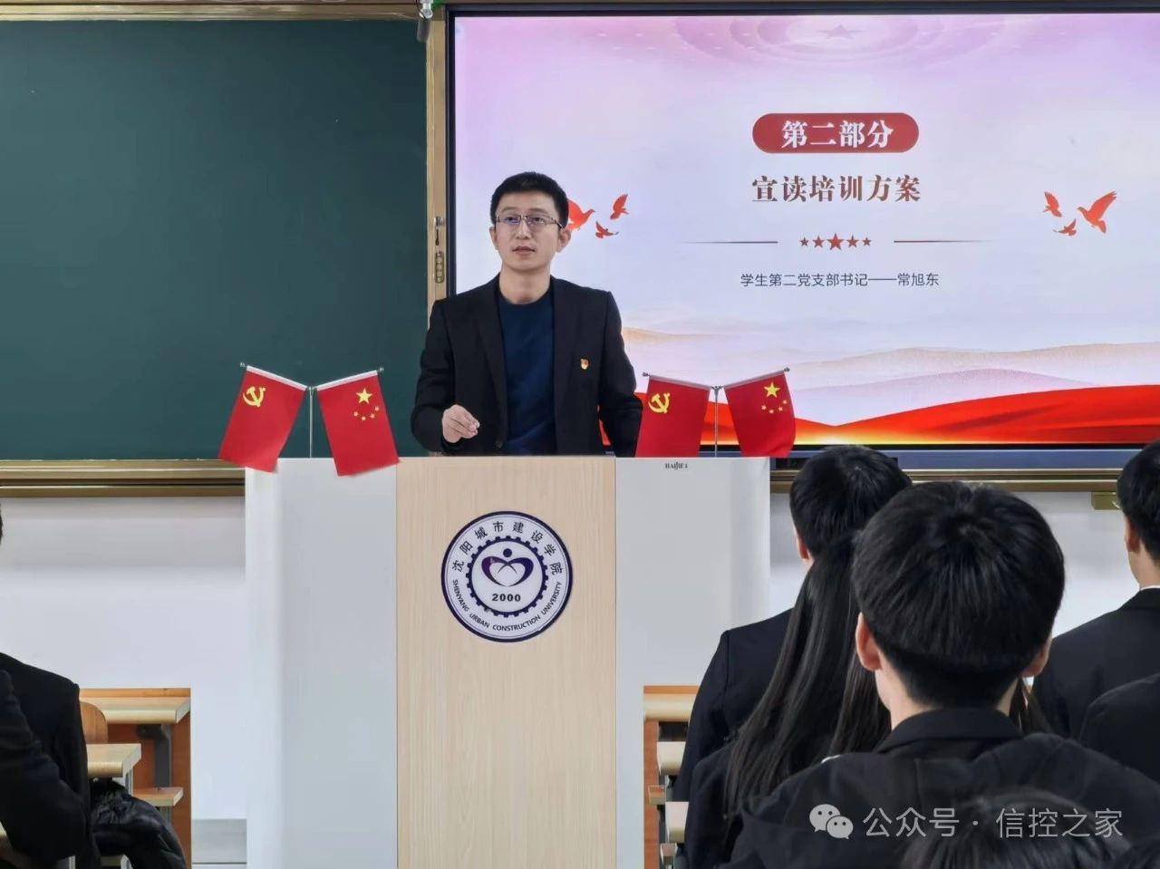 首先,学生第二党支部书记常旭东详细说明了本次入党积极分子集中培训安排,培训采取理论与实践相结合的形式,线下线上相结合的学习方式,以《中国共产党章程》、党的二十大精神、党的二十届三中全会精神以及习近平新时代中国特色社会主义思想为学习重点,旨在引导入党积极分子们坚定理想信念、端正入党动机,为早日加入中国共产党打下坚实的理论和实践基础。