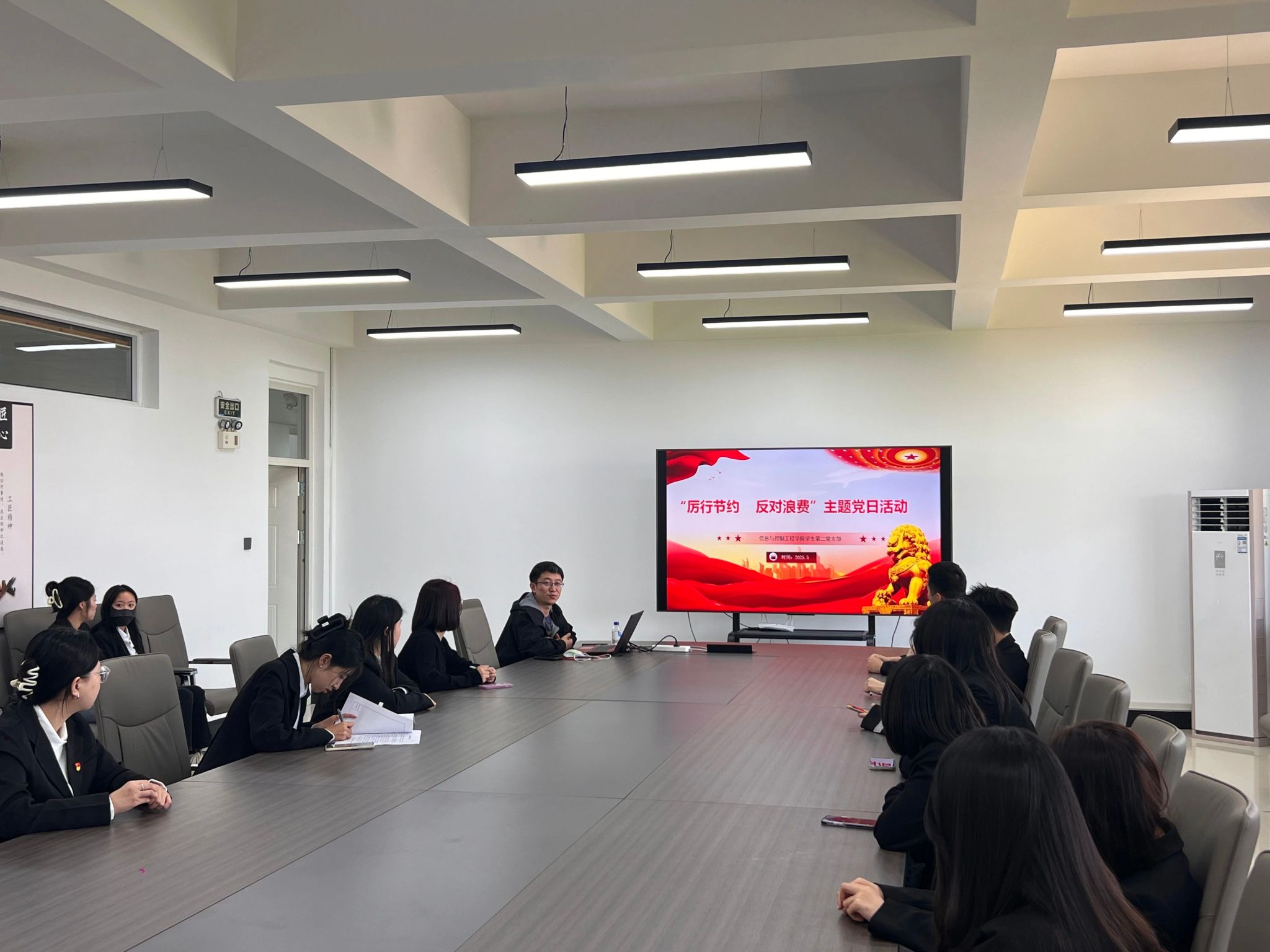 5月15日,教工第一党支部于明德楼415教室开展“勤俭节约,反对浪费”主题党日活动。活动中,党员教师结合自身教学科研工作实际,阐述了厉行节约、反对浪费的重要意义。大家一致认为,高校教师应发挥先锋模范作用,不仅要在课堂上传授知识,更应以身作则,将节约理念融入日常教学与生活中,用实际行动为学生树立勤俭节约的榜样,为营造风清气正的校园环境贡献力量。