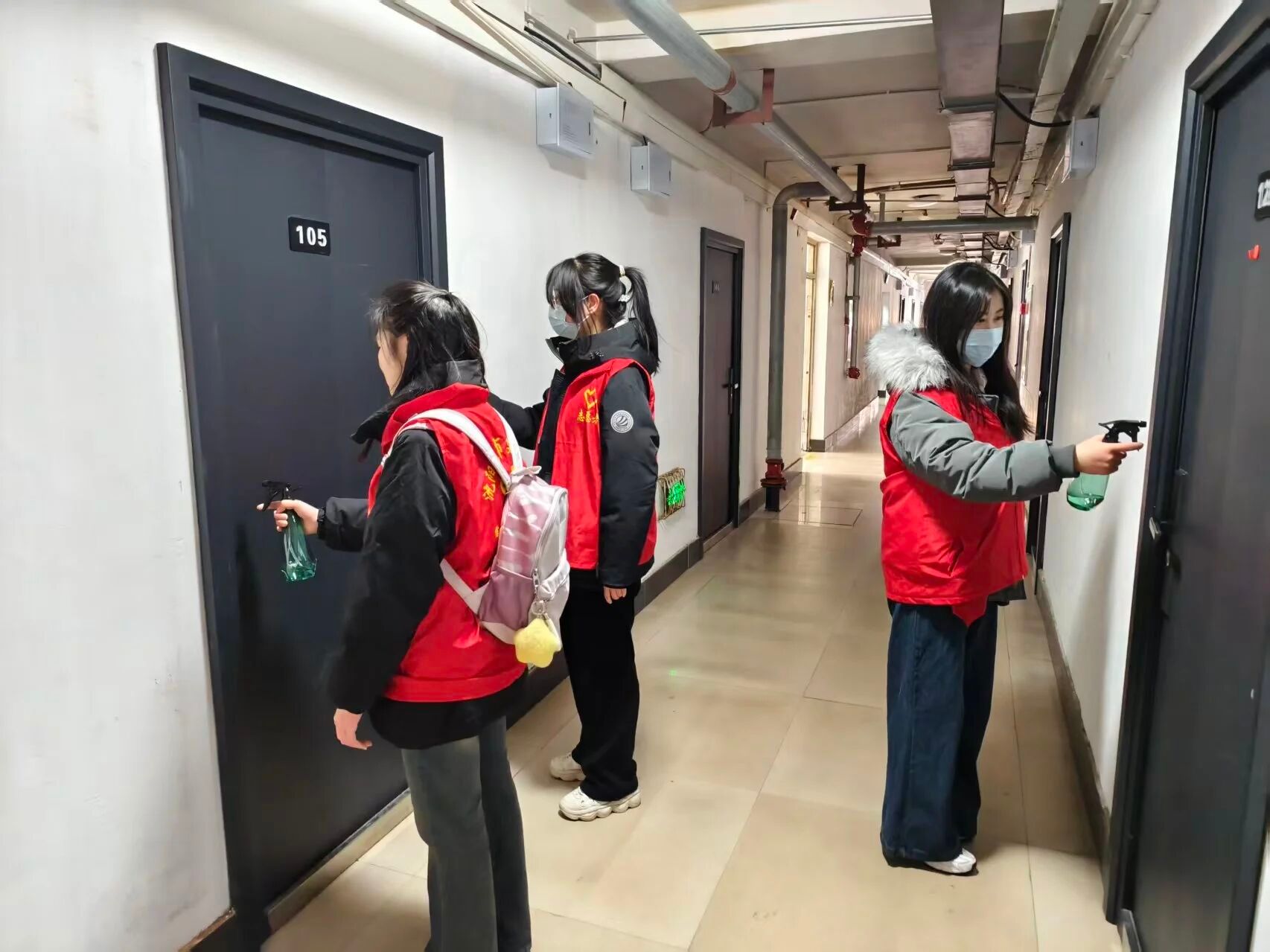 活动开展前,党支部坚持“周密部署、科学筹备”原则,扎实做好保障工作。一是细化方案明责任。结合宿舍楼的建筑布局、公共区域分布及人员流动规律,明确消杀范围,规范“自上而下、由内到外”的操作流程,实行“楼栋包干、专人负责”机制,将任务分解到岗、责任落实到人,杜绝工作疏漏。二是规范培训提能力。组织党员志愿者开展消杀操作专项培训,由支部负责人结合预防性消杀标准,讲解消毒液浓度配比、科学喷洒技巧、个人防护要点及应急处置措施,兼顾消杀效果与环境安全,全力为同学们营造干净、卫生、安全的居住环境。