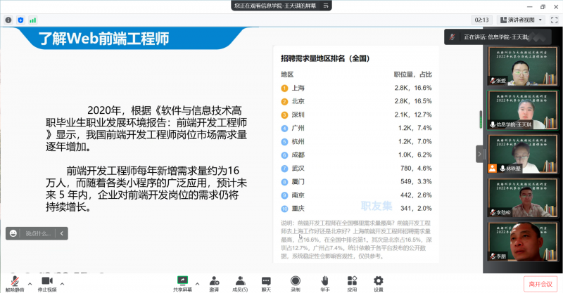 为高度保障新生课堂教学质量、提升新生课程教学效果,完善和提高教师教学水平与能力,9月7日,数据科学与大数据技术教研室开展线上磨课活动,所属全体专任教师和外聘教师参会。
