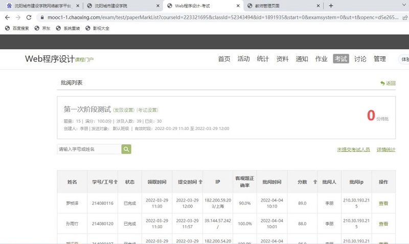 三是采取多样化手段确保学生的到课率和教学质量。为了确保学生的到课率和教学质量,采取学习通签到、课上抽点和下课前抽点的方式,督促和确保学生到课率。为提升学生的积极性、检验学生学习效果,通过课上随机提问和超星学习通的考试环节,分阶段进行测试,既有效督促学生的学习积极性,又能够帮助老师及时了解学生的学习情况,便于有针对性的调整教学方法手段,进一步保证线上授课的教学质量。
