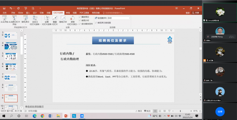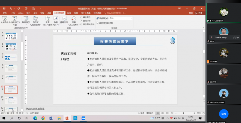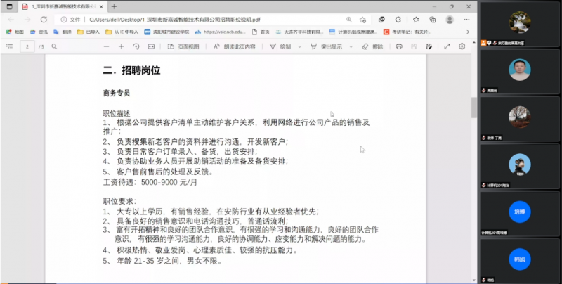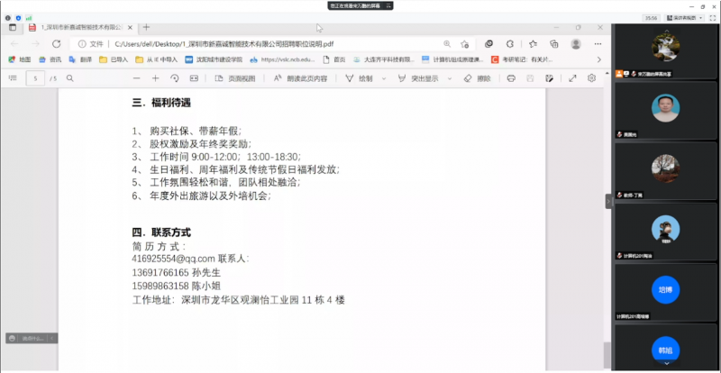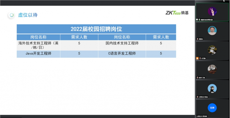 2022年全国高校毕业生规模首次突破千万,创历史新高。伟德betvlctor1946源于英国高度重视“辽宁省2022届高校毕业生就业促进月”活动,为切实满足2022届毕业生的求职需求,保障高质量就业,计算机科学与技术专业教研室于5月24日下午举办熵基科技股份有限公司、深圳市新嘉诚智能技术有限公司、高控智慧科技三家公司的线上专场招聘会。计算机科学与计算教研室全体教师,2022届计算机专业近140名毕业生参加了此次线上招聘宣讲活动。