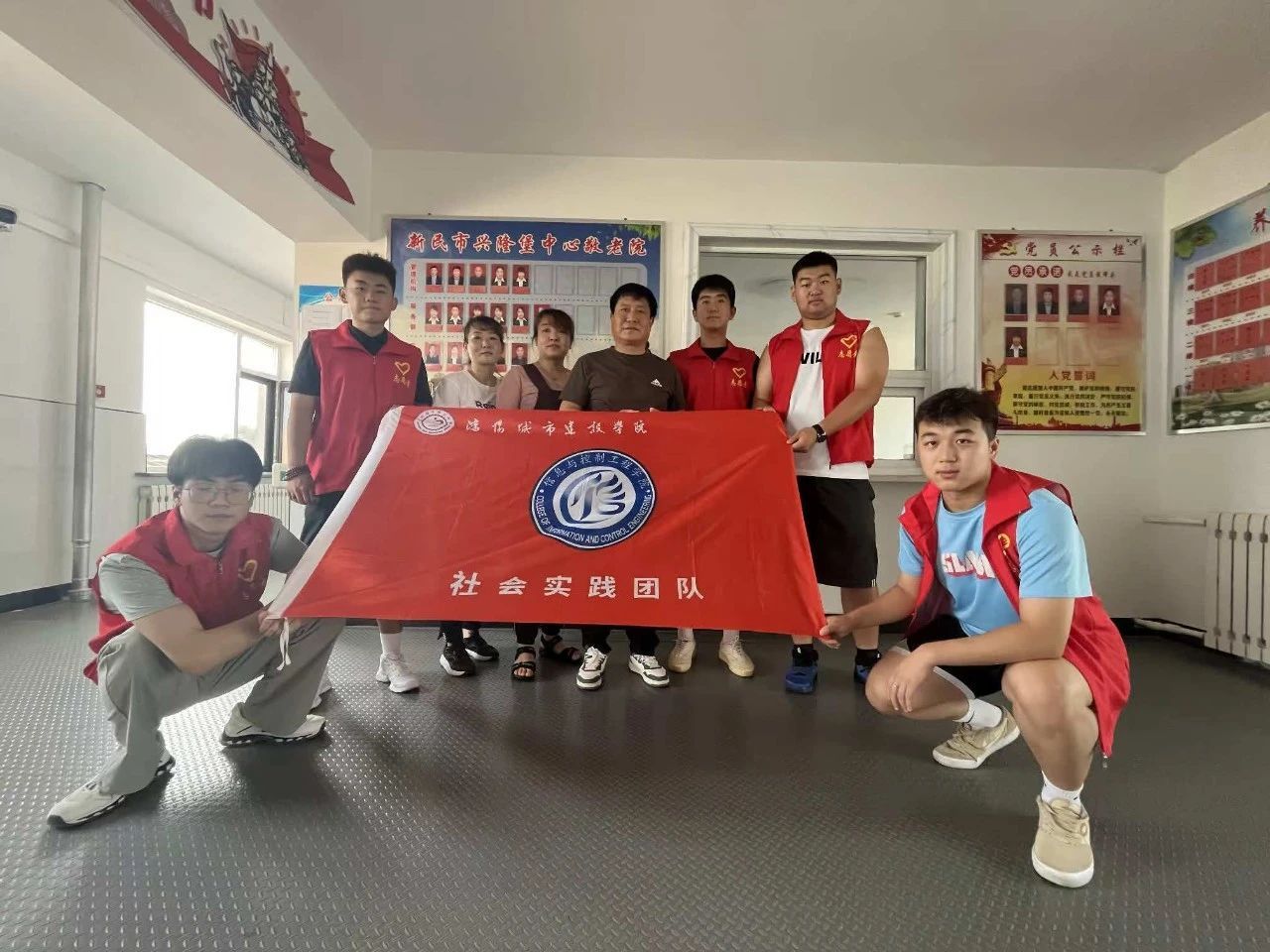 暑假初期,实践团成员们前往新民市中心敬老院,开展一系列的服务实践活动。他们聆听老人的故事,帮助老人收拾卫生,整理被褥等。旨在为老人们营造好的生活环境并为有困难的老人给予帮助。